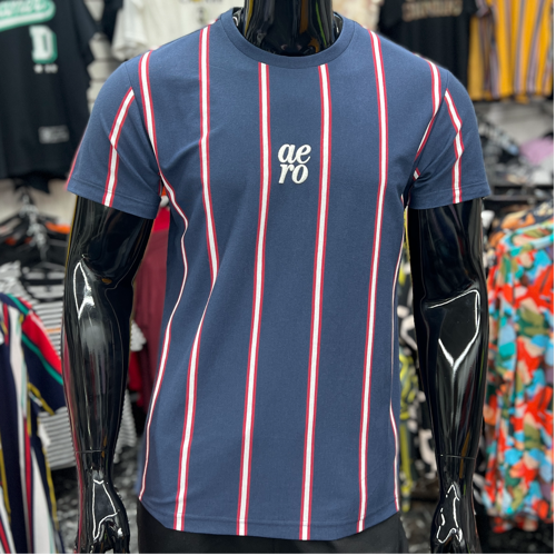 Aero Vertical Stripe T-Shirt Blue/White/Red