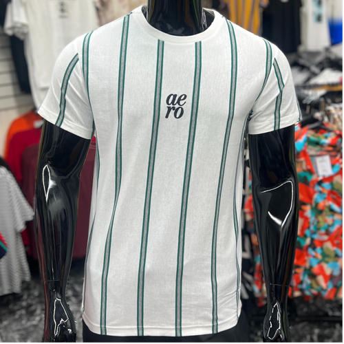 Aero Vertical Stripe T-Shirt White/Green/Grey