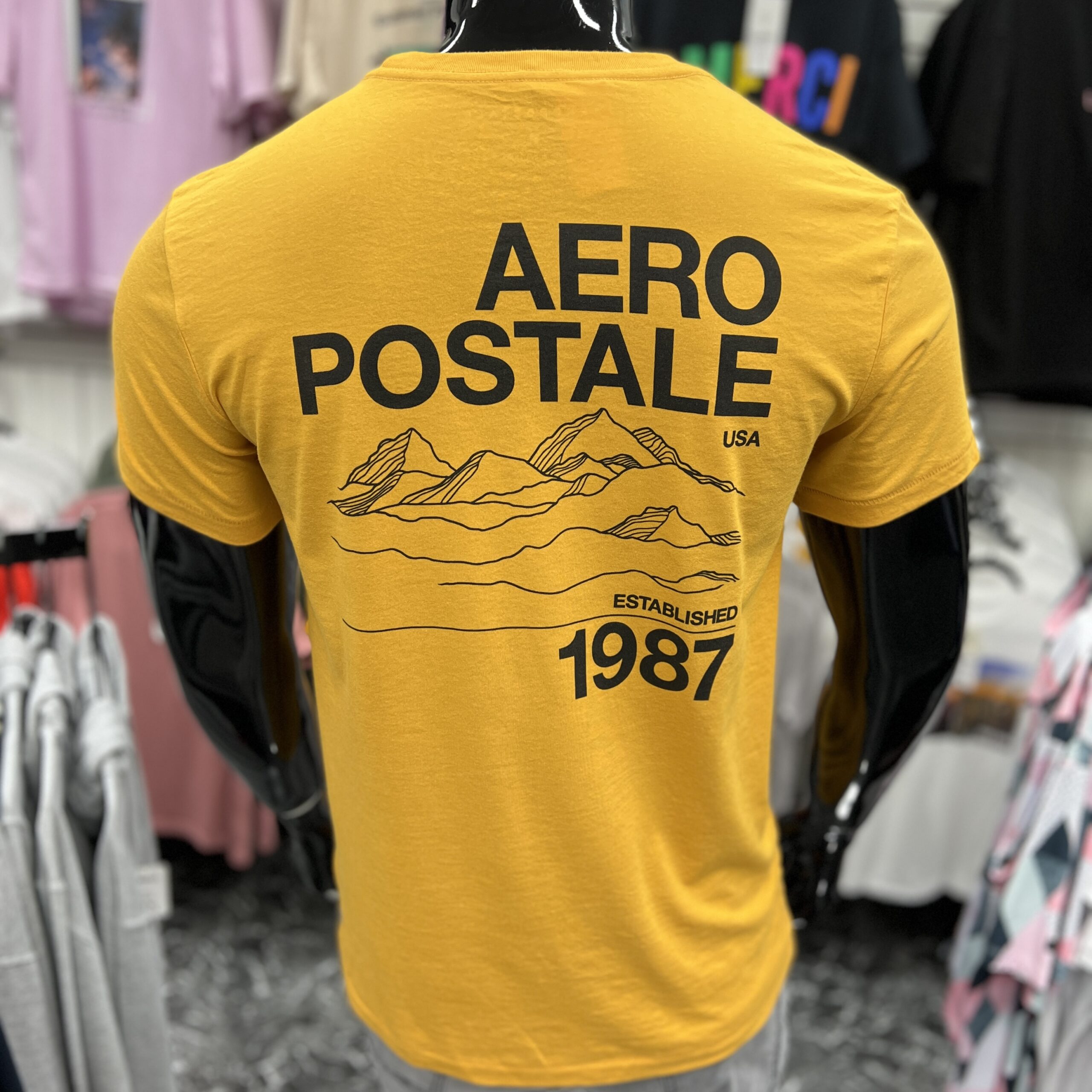 Aero Logo & Mountain Graphic Print Shirt Mustard