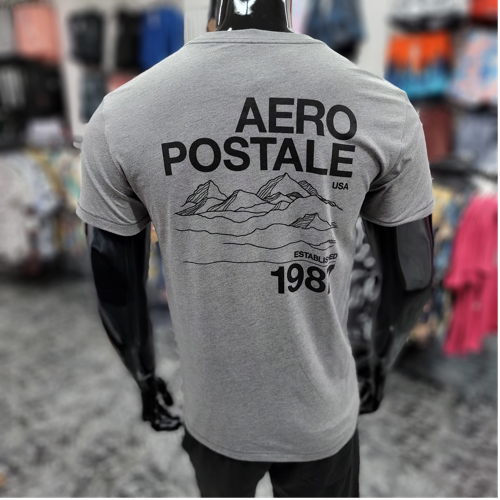 Aero Logo & Mountain Graphic Print Shirt Grey